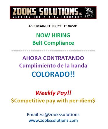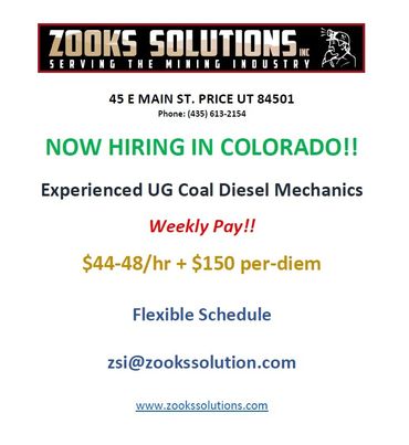 We are looking for experienced Underground Miners to work at Coal Mines in Utah, Montana, Colorado, and New Mexico.